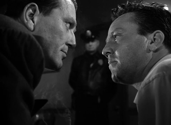Richard Fleischer’s early films noir are all enjoyably pacy movies, all coming home at around an hour with only Trapped stretching as far as 80 minutes or thereabouts. There’s a directness to them, a kind of relentlessness that drives them on toward a no nonsense resolution. That’s obviously a product of their B status, but Fleischer brought a style to his presentations that wasn’t always apparent in other budget features. His close-up shots are particularly effective, that focus on Fowley’s reaction to his wife’s performance has a certain shock value once it’s known what their relationship is. And the director gets mileage too from having Talman, Steve Brodie and Gene Evans scuttling round piles of lumber and freight on a shadow drenched dockside while McGraw’s squad tries to ferret them out. The later interrogation of Steve Brodie after he’s been picked up is tightly framed, emphasising how little wriggle room he has, and when McGraw thrusts himself aggressively into the shot there’s no doubt whatsoever how neatly he has been snared. None of this requires expensive or complex setups, just a good eye for composition and lighting and the awareness of how to catch a mood and portray it on the screen.