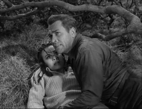 2. A highly unusual film setting, which really marks the film out. Although it was unusual by 1958 perhaps for films to be shot in the standard ratio it was not unheard-of. “YELLOWSTONE KELLY ” was apparently shot in 1.37:1 and that was in 1959. However IMdb does show “FLOODS OF FEAR” as 1.85:1.