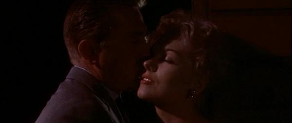 Director Richard Quine had been making a succession of mostly light comedies throughout the 1950s, with a couple of films noir such Pushover and Drive a Crooked Road thrown into the mix. Bearing that in mind, a melodrama in the mold of Douglas Sirk would appear to be an odd project for him to take on. For all that, it works very well indeed, with Quine tackling the serious themes with skill, tact and sensitivity. He never allows it all to become too broad, overheated or overwrought. And visually, he paints from an exciting and evocative palette as he and cinematographer Charles Lang Jr light, frame and color the movie beautifully – from the marvelously tinted and shadowed first “date” for the clandestine lovers to the warm autumnal mellowness of the final scene, and through it all Ms Novak’s costumes progress from brazen scarlet to virginal white later in the movie, indicating a journey back to spiritual purity. All in all, an excellent handling of cinema’s own special syntax.
