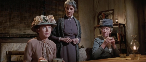 Anne Bancroft wasn’t the first choice to play Cartwright. Patricia Neal had started work on the movie but suffered a stroke so a replacement had to be found. Ford is on record as not rating her work but he was wrong about that – she has grit and toughness with just enough of that hint of vulnerability to fuel the soulful regret that defines the character, a woman wryly reconciled to the impishness of fate. Much as I admire Neal as an actress, I doubt she could have done better in the part. Margaret Leighton also fully inhabited her role and touches on some of that inner fragility she used so expertly in Carrington V.C. and The Sound and the Fury. Among the other cast members Flora Robson brings out that well-bred restraint that was her trademark. And it’s a pleasure to watch Anne Lee in one final Ford movie – a woman I will forever think of as Bronwyn in How Green Was My Valley and Mrs Collingwood (“All I can see is the flags”) in Fort Apache.