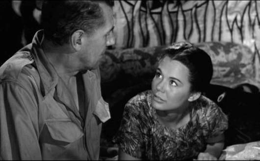 On paper, one would say that having Audie Murphy face off against Michael Redgrave would lead to an uneven and unfair contest. On celluloid and in fact , however, the contest is a remarkably even and productive one. Murphy had grown steadily as an actor by the late 1950s and this kind of dramatic role was well within his capabilities. There is still a lot of fresh energy about him, and that quality is used to superb effect when placed in contrast to Redgrave’s worn and dissipated cynicism. That fresh faced enthusiasm always cloaked a deeper steel and there is never any doubt about the resilience of the idealistic young man he was portraying. When he trades words with Redgrave’s weary writer, the latter may indicate disdain for their naivety but he never really questions their sincerity, and nor do the viewers. Redgrave is every bit as good as the complete opposite, a tired and spent man whose surface smugness masks chronic insecurity and desperation. We believe it when Murphy shows drive and positivity, and that sense of credibility is just as strong when Redgrave paints his own picture of desolation and emptiness.