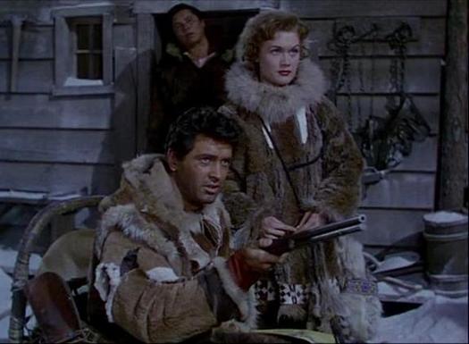 The setup is quite simple. A stagecoach headed west is carrying among its passengers one Jennifer Ballard (Donna Reed), a woman journeying to meet her fiance Ben Warren (Rock Hudson) in order to get married and then continue on their way to California and the prospect of a future ranching. They find themselves sharing space with several others, ostensibly traveling on business of one kind or another. Before long these supposed gentlemen are revealed to be Frank Slayton (Phil Carey) and Jess Burgess (Leo Gordon), a pair of outlaws making the journey simply to facilitate the robbery of the stagecoach by the rest of their gang. In the course of the holdup Warren is shot and while merely wounded he is mistakenly thought to be dead and so abandoned. Slayton has set his sights on Jennifer and brings her along as they set out on the run south to Mexico. The pursuit element is therefore set in motion as Warren goes off in search of his woman, while the revenge aspect is strengthened by the fact Slayton and Burgess quarrel over the decision to abduct the woman, resulting in the latter being bound and left to die in the shadow of circling vultures. His rescue by Warren leads to the formation of an initially uneasy alliance, one held together by the promise of taking Slayton as the prize. Support comes from an unlikely quarter, an Indian called Johash (Pat Hogan) who is also hungry for revenge on Slayton whom he blames for the death of his sister. And so the chase is on, with the outlaws unaware to begin that anyone is on their trail.