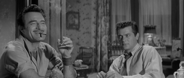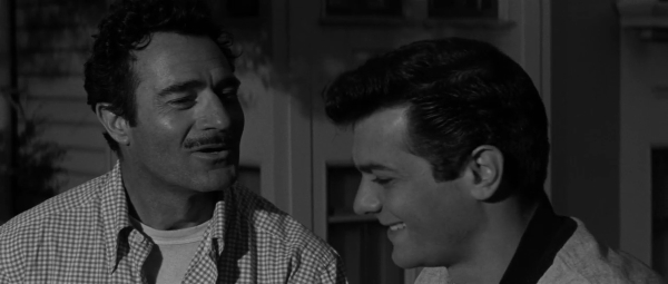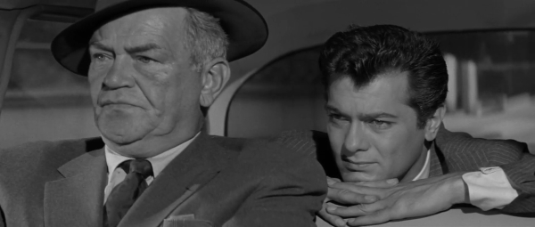The opening is stark and shockingly abrupt, the caption informing us that the studio set represents an approximation of a side street on the San Francisco waterfront. A priest strolls out of the shadows towards the camera, his attention suddenly caught by a voice softly calling his name. We zoom in on his eyes as they register curiosity, maybe recognition and a touch of fear. This is  Father Tomasino and we’re witnessing his final moments as a knife-wielding assailant, seen only as a shadow cast against the tarpaulin of a truck, strikes him down. It’s one of those crimes that outrages people, particularly those who knew and respected the victim. One such person is Joe Martini (Tony Curtis), a young traffic cop who grew up in an orphanage and owes his job and much besides to the murdered priest. Martini wants the killer and he vainly presses his superiors to let him in on the investigation. At the funeral he notices a man who seems to be more deeply affected, tormented even, than the other mourners. There is something about the intensity of this man’s grief that gives Martini pause and indeed leads to him temporarily turning in his badge in order to pursue his own inquiries. The person who has attracted his attention is Sylvio Malatesta (Gilbert Roland), the owner of a seafood eatery and a familiar figure on the waterfront. Deftly and swiftly, Martini inveigles his way into Sylvio’s life, becoming a friend, employee and even a guest in his home.