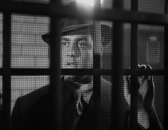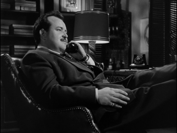 First up, there is Frankie’s confrontation with Noll when he learns how he’s been stiffed and is getting the brush off. He resorts to his old two-fisted approach, laying one on his former buddy and storming out fired up with indignation and plans for retribution. Then later, having cobbled together a ragtag bunch of would-be enforcers courtesy of another old confederate (the instantly recognizable pockmarked Marc Lawrence), he sets about muscling what he’s owed out of Noll. However, this is the point where he comes face to face with what can only be viewed as a corporate minefield, an impenetrably complex series of cutouts that serve only to emphasize the absolute inefficacy of Frankie’s brute force methods in this brave new world. To witness his enraged impotence is akin to watching a bull elephant in its death throes, and the humiliation is compounded and completed when Mike Mazurki’s hulking doorman hauls him out to the back alley to hand him the beating of a lifetime.