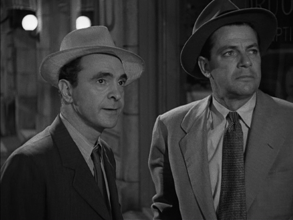 Once again, Tony Curtis is given the chance to prove how adept he was at straight drama and he carries it off successfully. I have probably mentioned this before, but I think it’s worth restating: when actors gain a reputation as skilled light entertainment or comedic performers they seem to get stuck with that label and regarded as capable of only that type of work. Sure some play up to it, and Curtis did choose poorly in his later roles yet it seems a pity that his dramatic work, which is generally very strong, is neglected or at best downgraded as a result. The sincerity and determination of his character is never in doubt and he handles the ups and downs experienced, depending on how his investigation happens to be progressing, most convincingly. Marisa Pavan, who only passed away last December, is very soulful and controlled as Anna. It is this control and emotional caution she displays that gives added fire to the scene where she succumbs to her true feelings as the dangerous game her betrothed appears to be playing is laid bare. There is solid support from Ted de Corsia and Jay C Flippen as the senior cops, the former typically bullish and aggressive while the latter gives another of his slightly dyspeptic avuncular turns.