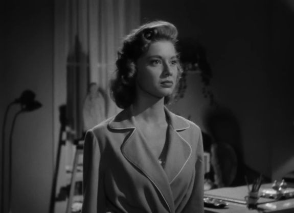 Nevertheless, this acts as a catalyst, striking the scales from the eyes of Dave and Kay and helping to galvanize Frankie into taking genuinely effective action. As such, the movie tosses a lifeline of sorts to those ruing the passing of a more straightforward age. There is the hope held out that the conmen and the chiselers would get their comeuppance, that some sort of justice would prevail, which may be considered as diluting the noir sensibility. Maybe, or maybe the late 1940s didn’t fully encapsulate, or not as fully as we’re led to believe at any rate, the kind of existential despair that is frequently cited as the basis of noir. Perhaps the world today where gaslighting fraudsters and incompetents sit unchallenged at the top of the heap is the real noir era. Perhaps.