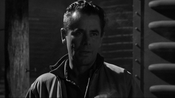If one were to seek a visual metaphor for fate as a fixed and predetermined path, then a railway line is as good a one as any. Sleek and clean, indicative of precision and order, the lines forge the way ahead, carrying their passengers to a destination that lies at the end of the track as sure as a compass needle points to north. Yet the lines run in more than one direction and points do exist where it’s possible to shunt from one to the other. Human Desire opens with those railroad lines and the locomotives that carry all kinds of people to all kinds of places, starting and ending with absolute certainty at predefined locations that can no more be avoided or cheated than birth and death themselves. In between though, the choices are available, laid before the driver as he advances and by extension before those he brings along with him on the journey. Jeff Warren (Glenn Ford) is an engineer on the railroad, back home and back in his old job after serving in the Korean War. He is very much a regular guy doing a regular job, following those clearly defined lines in life in many ways. There’s nothing particularly special about him, he’s no medal adorned hero nor does he profess to have any ambitions beyond the desire for an uneventful life. However, a movie with this title must necessarily focus on desires affecting all kinds of people and even changing according to circumstances. Carl Buckley (Broderick Crawford) is an old acquaintance, a man who has risen to assistant yard master while Warren was off at war. He’s a blunt, brutish character, loud of mouth and quick of temper who manages to get himself fired for quarreling with his supervisor.