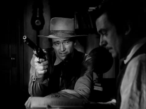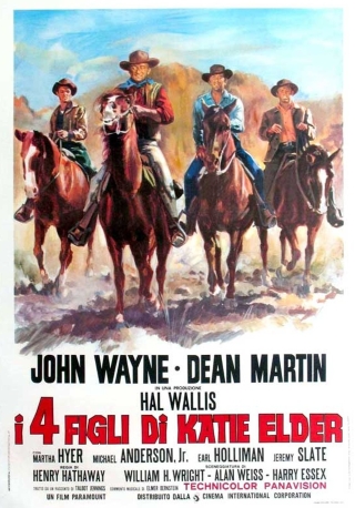 The plot of The Sons of Katie Elder follows a well trodden path. A newcomer buys influence and expands his power, elbowing aside any local objections or stamping hard on them should the need arise. In the case of the eponymous Mrs Elder and her offspring, the latter action appears to have been applied. We never get to see Katie Elder, she has already passed away before the movie begins and the opening scene has three of her sons, Tom, Matt and Bud (Dean Martin, Earl Holliman, and Michael Anderson Jr respectively) waiting by the train halt for the senior member of the clan to arrive prior to attending the funeral. The oldest brother John Elder (John Wayne) is a gunfighter of renown or ignominy, depending on one’s perspective. Well he doesn’t show up so the service takes place without him, or so it seems. The fact is he has slipped back home unobtrusively and we can observe him watching proceedings from afar, high among the rocks overlooking the cemetery, aloof and vaguely forbidding in his isolation. As the story progresses, it becomes evident that the Elder family has been cheated, the father was almost certainly murdered and his wife then forced to leave the home where she raised her four boys before they went on their separate ways. Now they are back though and experiencing a combination of guilt for their neglect of a woman who everybody held in the highest regard as well as an incipient sense of indignation over being gypped. And that’s how it plays out – the process of arriving at some kind of accommodation with feelings of self-reproach develops side by side with a deepening conflict with Morgan Hastings (James Gregory), the man now occupying the land that was once theirs.