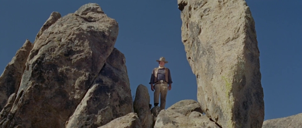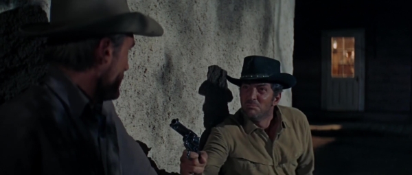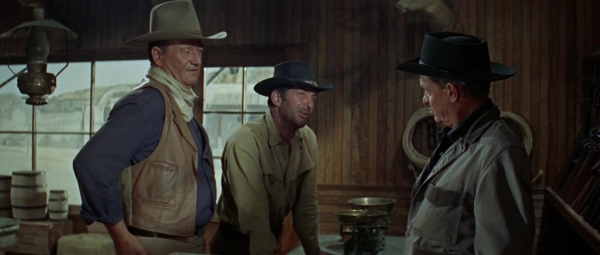 The notion of past events coloring or shading the present frequently results in good drama, and the shadow of Katie Elder looms large in the lives of her sons. Where each of them is seen to be flawed or negligent or profligate, their mother is spoken of with warmth and respect by all those who had known her. This conceit is a neat way to allow the characters to address their own deficiencies within a narrative framework which encompasses justice and redemption. Having Katie exist only as a memory offers the opportunity to build something of a myth around her, as of an ideal to be lived up to. By rendering her in those terms her spirit starts to feel emblematic of the mythical west, almost as though woman and land have fused. It’s an aspect that is further highlighted when Martha Hyer speaks of her to the four sons as all of them stand around the old lady’s beloved rocking chair.