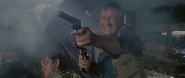 The Sons of Katie Elder was John Wayne’s first film after undergoing major surgery for lung cancer. He’d had a lung and a couple of ribs removed only a few months before but looked and acted remarkably robust under the circumstances. It’s an ebullient performance, big and commanding with the balance between humor and seriousness deftly maintained. Henry Hathaway framed and shot him in such a way as to emphasize the iconic, monumental stature he was growing into by this time. Some of the action scenes are very stylized, but superbly put together at the same time – the big gun battle at the river crossing, and that memorable moment when he belts George Kennedy’s sniggering bully full in the face with an axe handle.