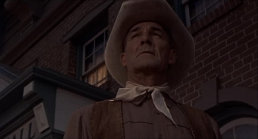 Michael Pate, John Emery and Warner Anderson are a fine trio of villains: Pate gets across the cunning and menace of his character very successfully, and even outdraws Scott quite spectacularly, while Anderson and Emery are as slimy a pair of puppet masters as you could wish for. Wallace Ford is one of those character actors whose presence is always welcome, and he had a strong pedigree in westerns. As the town doctor, and Scott’s only true friend, he has a good share of screen time and is solid and reassuring throughout. Of the remaining support players, both Jeanette Nolan and Jean Parker deserve a mention for the sense of poignancy and pathos they bring to their small but pivotal roles.
