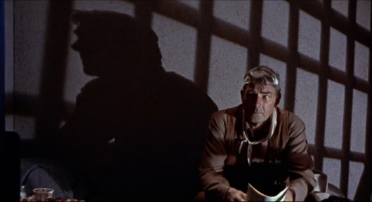 With the sun beating down and the trappings of the modern world stripped away, something approaching truth is gradually revealed. Hasn’t the concept of entering the desert, the wilderness, represented the confrontation of temptation and the attainment of spiritual renewal from Biblical times on? The desert of this movie serves a similar purpose, bringing the secrets of the past out into the open and finally laying out the prospect of a new beginning for those whose resolve is strong enough to withstand the siren call of greed. Is it too convenient that there are so many potential suspects all brought together, and that all of them should be tormented by the prickly discomfort of a guilty conscience? Perhaps there is convenience too in the neat way the hunter proves himself to be little better, and in some senses arguably worse, than the hunted. Yes, all of this can be taken as contrivance, but it is a story after all, a parable with a lesson to impart, and not a factual entry in a diary. So long as it all leads to the resolution writer Alan Le May and director Sturges desire and the realization they wish to encourage, then it ought to be permissible to bend credibility a little.