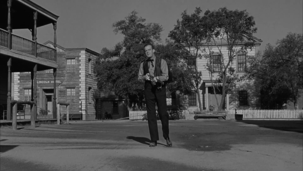 Conversely, Ride Out for Revenge is a much more serious affair. Bernard Girard is clearly shooting on a tight budget but making fine use of Floyd Crosby’s stark black and white cinematography. This is weightier stuff with conflicted marshal Rory Calhoun butting heads with a drunken and incompetent soldier played by Lloyd Bridges. The story explores greed, intolerance and the corrosive effects of unfettered hate on individuals and whole communities. There’s not much to smile about in this movie and there’s a hardness to it befits an exploration of the themes mentioned. There is an interracial romance which is central to the plot – sidelining Gloria Grahame, who appears so completely detached that hers is practically a non-performance – and has the guts to end on a far more hopeful note than is often the case with such storylines in westerns of the time. An early outing for Kirk Douglas’ Bryna Productions, Ride Out for Revenge challenges all types of prejudice and even the whole idea of manifest destiny.